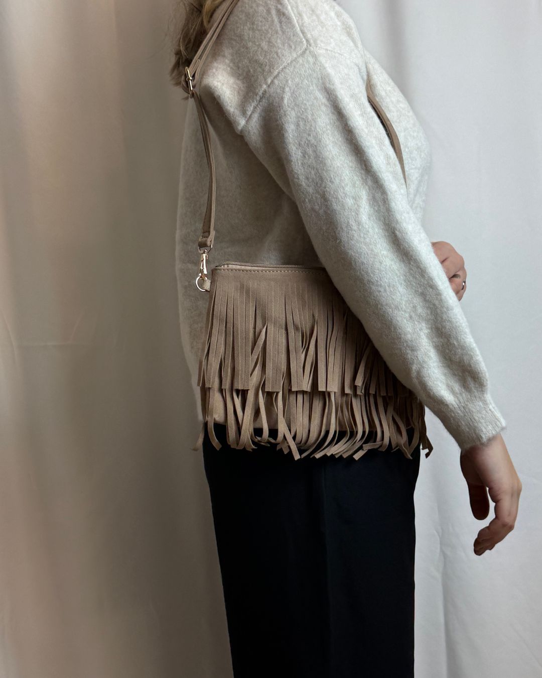 Deze bruine franje tas is een stijlvolle en speelse toevoeging aan je outfit. De franjes geven de tas een leuke beweging en maken hem perfect voor zowel casual als feestelijke looks. Shop deze tas ook in het bruin