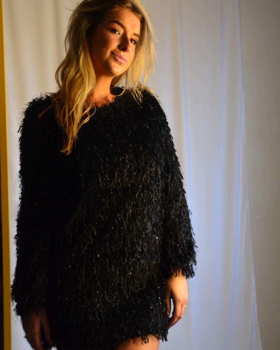 Dit feestelijke jurkje met lange mouwen, veren en pailletten is perfect voor de feestdagen of een gezellig feestje. Een echte eyecatcher die stijl en glamour combineert.