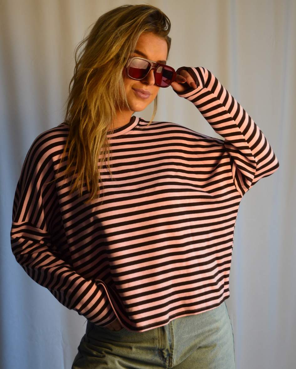Nova streeptop roze/bruin